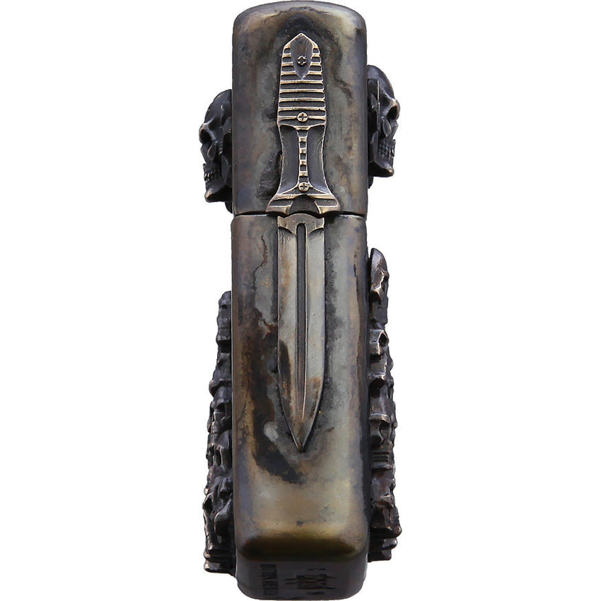 Dimensions: 1.44" x 2.25". Double-sided skull relief artwork. Bronze armor finish. Boxed.