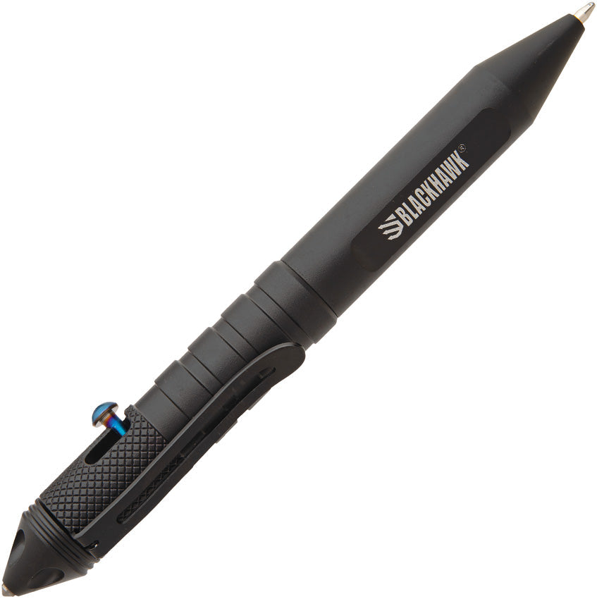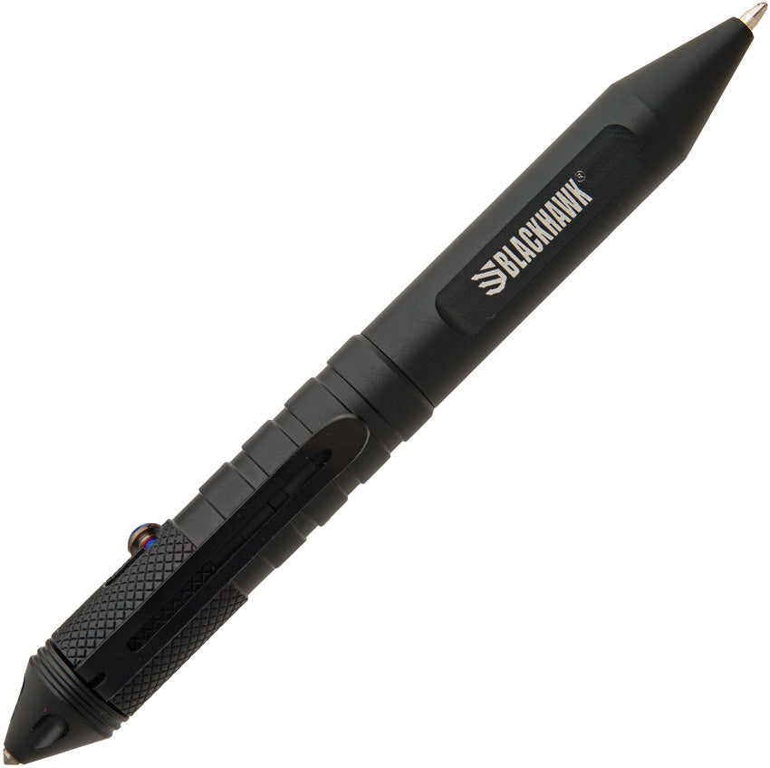 5.5" overall. Glass breaker. Pocket clip. Bolt action. DNA catch areas. Comes with medium point Parker refill. Compatible with Parker style Fisher Space refills. Aluminum construction. Color: Black. Hang packaged.