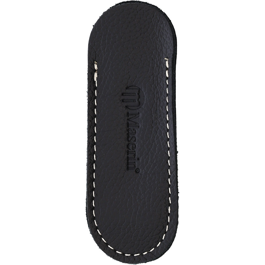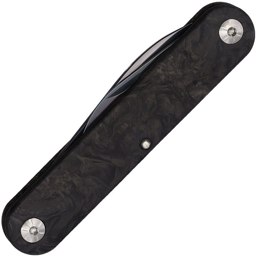 3.5" (8.89cm) closed. Black finish stainless spear and serrated Wharncliffe blades. Fatcarbon handle. Black leather pouch. Boxed.