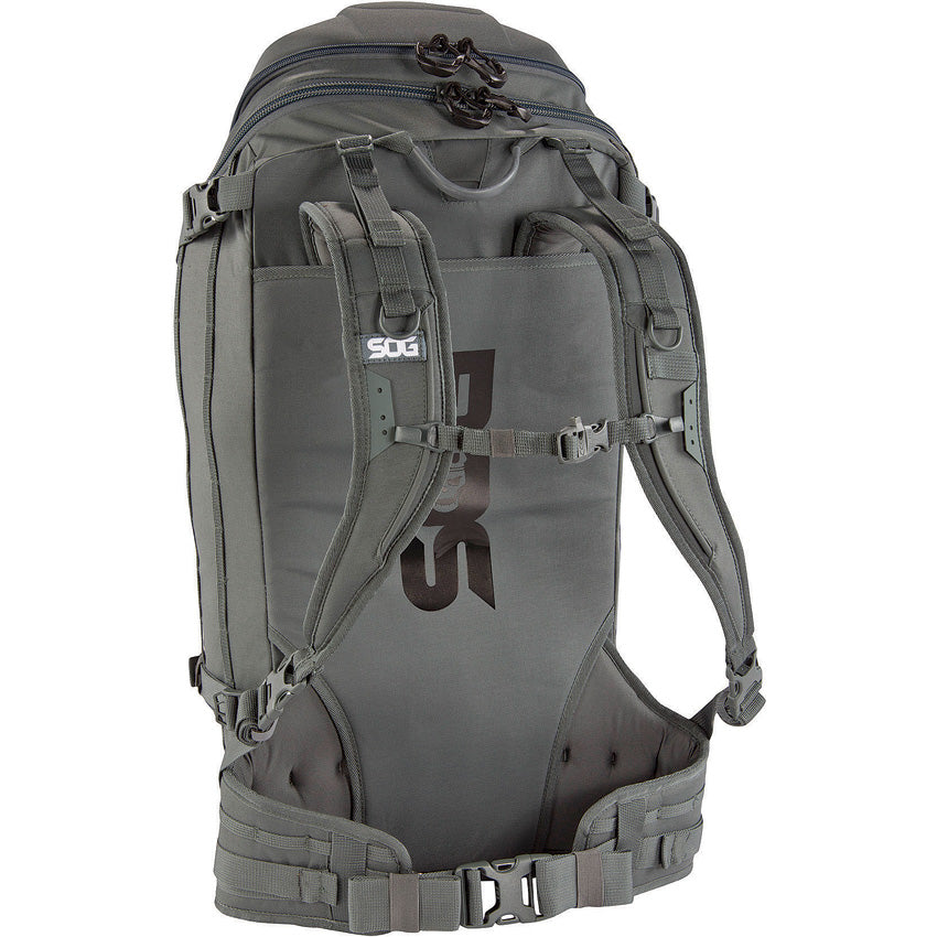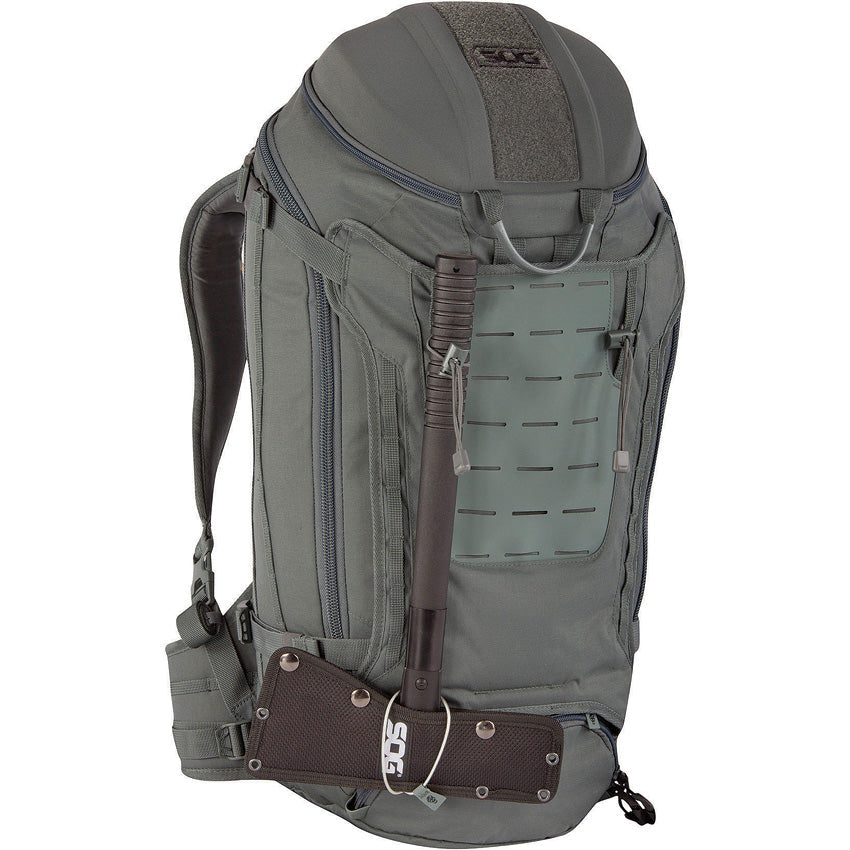 Dimensions: 26.4" x 11.6" x 9.4"; Construction: Kodra 500D Nylon; Color: Gray; Weight: 58.6 oz; Carry Volume: 35 Liters; Kit Contents: stowable shoulder straps. Hypalon zinger tabs. Sternum strap with whistle. Quick adjust shoulder straps. Stowable padded hip belt. Rigid suspension system with aluminum staves. Internal organization pockets. Sunglass storage with loop lining. Long carry tie down. External compression flap with pocket. Built-in hydration storage. Internal laptop sleeve. MOLLE webbing and loop field. Panel load main compartment access. Key ring clip. Quick release daisy chain. Other Info: External loop field. Front grab handle. Shock cord tie downs. Laser cut Hypalon MOLLE field. Braided steel tool retention loops. Quick access front storage. Strap organizers. Webbing lashing points. Quad-zip main compartment access. Large zipper pulls. Side compression straps. Impact resistant shell. Top grab handle. Adjustable load stabilizers. Quick release Bulk Packed.
