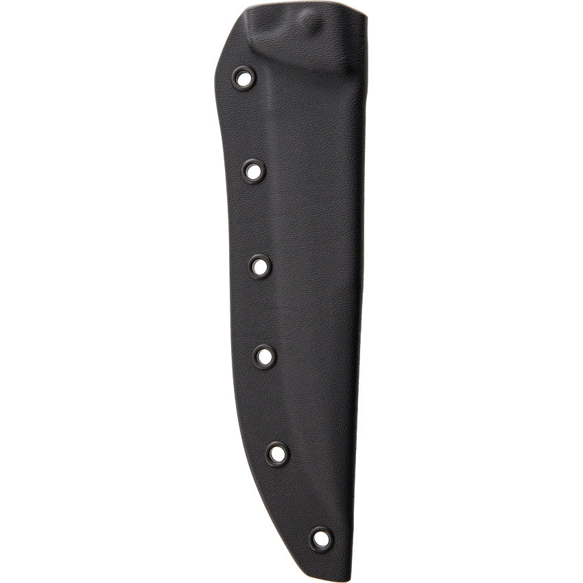 11.625" overall. 6.75" sandblasted finish 1095 high carbon steel hunters point blade with thumb ridge. Full tang. Black linen micarta handles. Black rotating injection molded Kydex belt sheath.