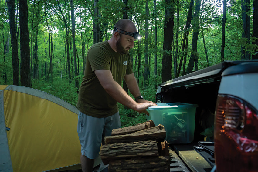 Dimensions: 2.6" x 2.09" x 1.42". Water resistant. Impact resistant. Modes: Boost/All-On (300 lumens, 4h runtime); Spotlight (215 lumens, 9h runtime); Floodlight (100 lumens, 14h runtime). Detachable magnetic backing. Marker/pencil holder on silicone-infused, adjustable head strap. USB-C charging cable. Requires (1) Lithium battery (included). Clam packed.