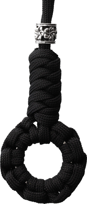 6" overall. Small metal alloy ring at the bottom is wrapped in the traditional cobra knot, while the tie off features the snake knot. Color: Black. Bead types vary. The one pictured may not be the exact one received. Bulk packed.
