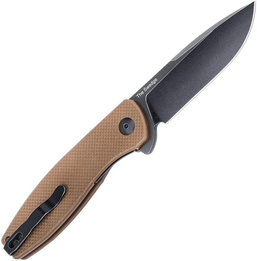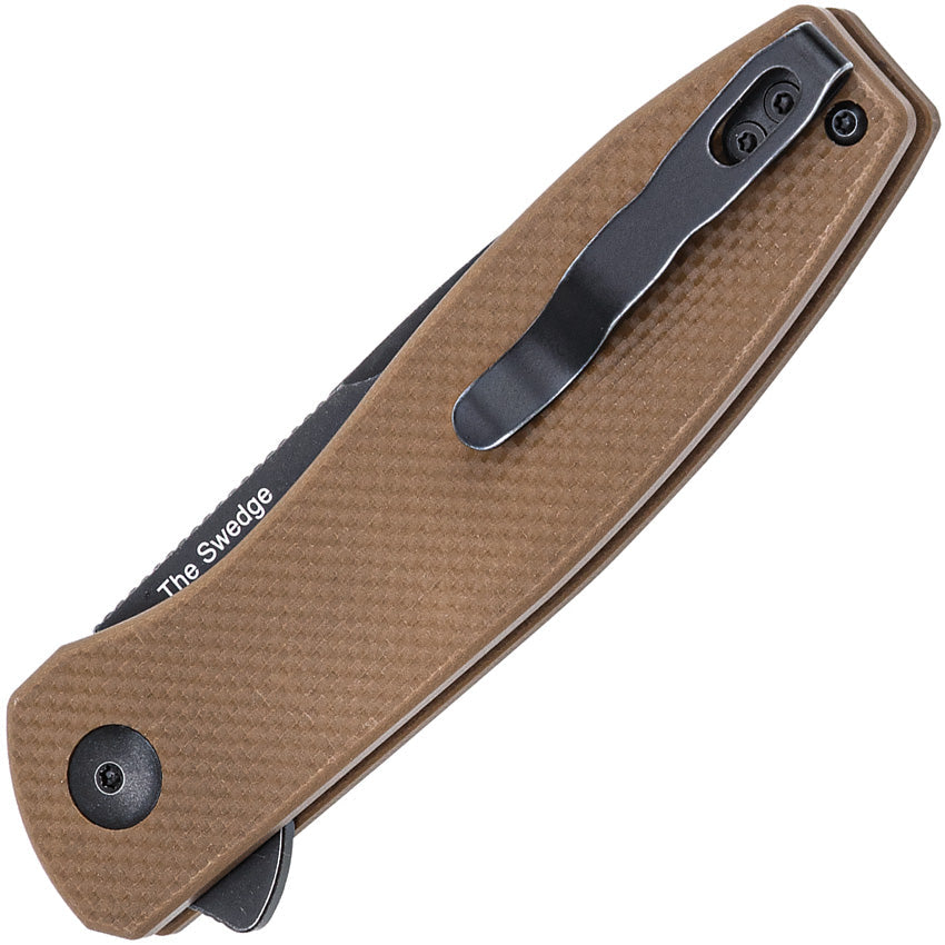 4.5" (11.43cm) closed. 3.5" (8.89cm) black stonewash finish 9Cr18MoV stainless blade. Brown G10 handle. Extended tang. Pocket clip. Boxed.