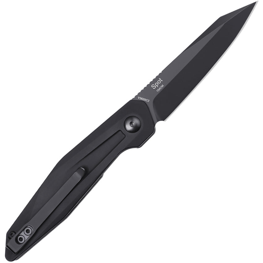 The Spot Linerlock Black features a 3" (7.62cm) black finish 154CM stainless blade, known for its excellent edge retention and corrosion resistance. This high-quality blade is perfect for a variety of tasks, from opening packages to outdoor activities.