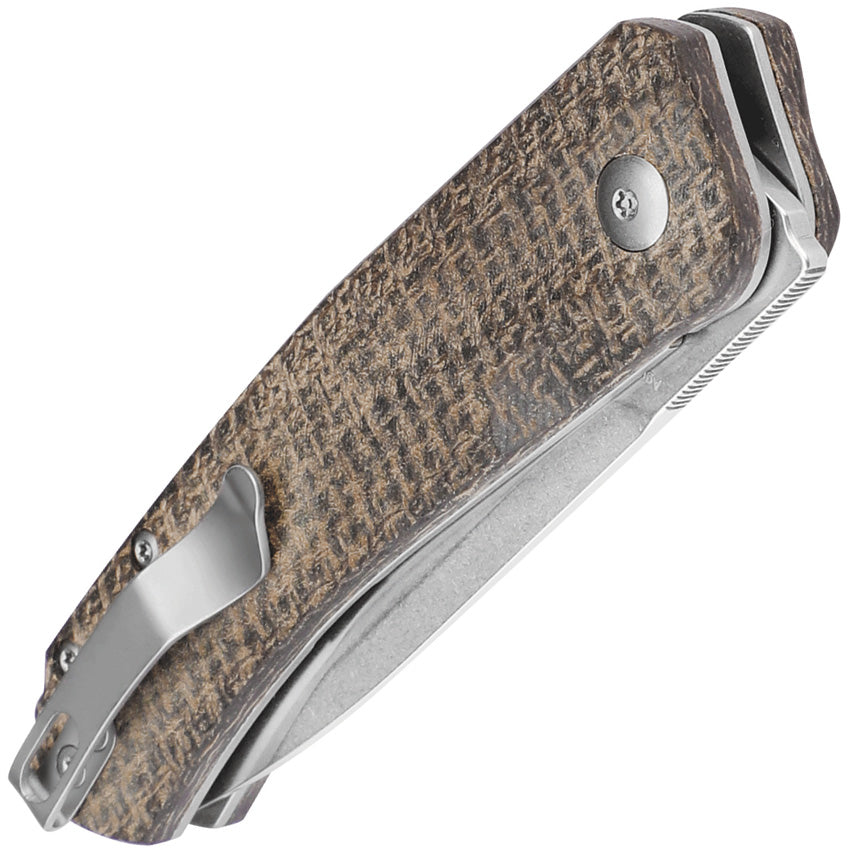 • Stylish handle - The brown burlap micarta handle not only looks great but also offers a comfortable and secure grip.