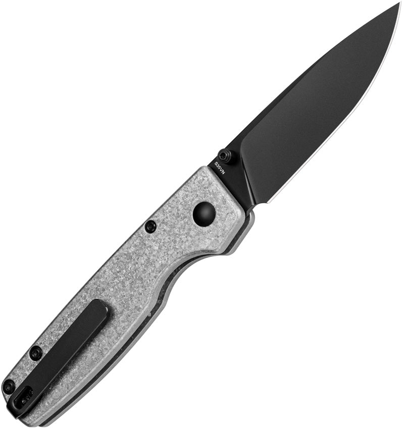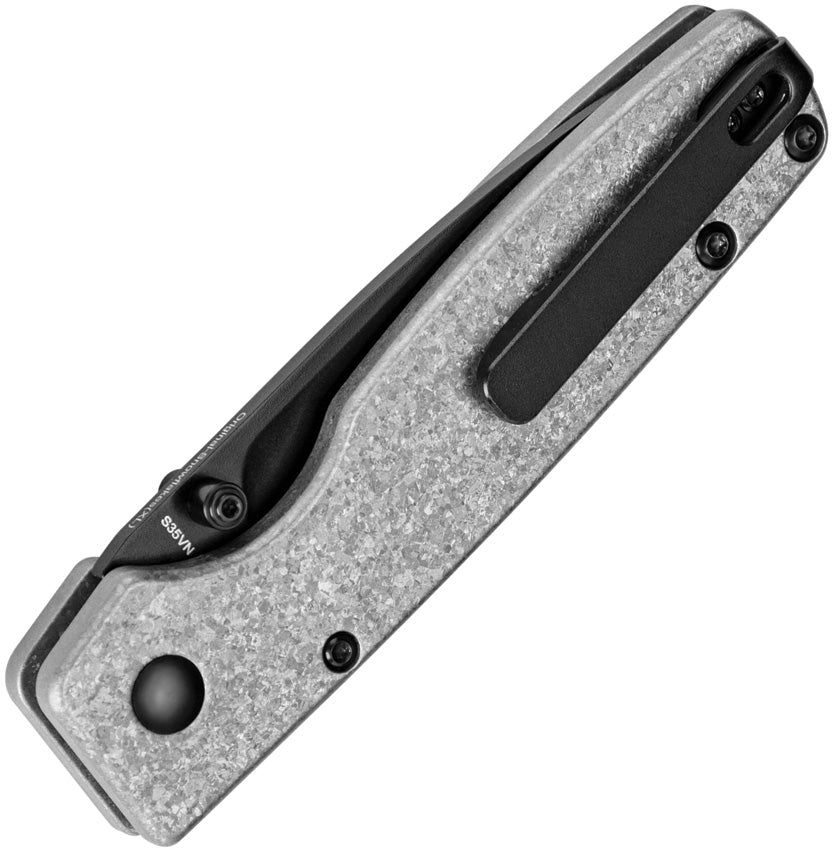 4.25" (10.8cm) closed. 3.25" (8.26cm) black finish S35VN stainless blade. Gray titanium handle. Thumb stud. Pocket clip. Boxed.