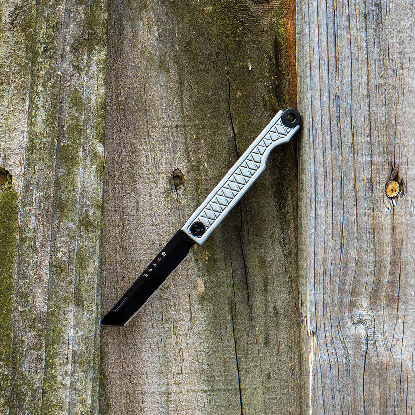 2.75" (6.99cm) closed. 2" (5.08cm) black finish 440C stainless tanto blade. Gray aluminum handle. Keyring. Slip joint. Weighs only 1 ounce. Boxed.