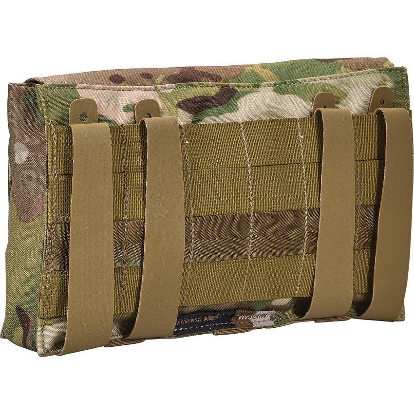 Dimensions: 8" x 7.5" x 0.75". Weight: 9oz. Organizer with integrated map pouch. Various accessory pouches for pens, tools, etc. Hook and loop closures. Water and soil resistant. Can use non-permanent markers. Color: Multi Cam. 700D Cordura construction. Bulk packed.