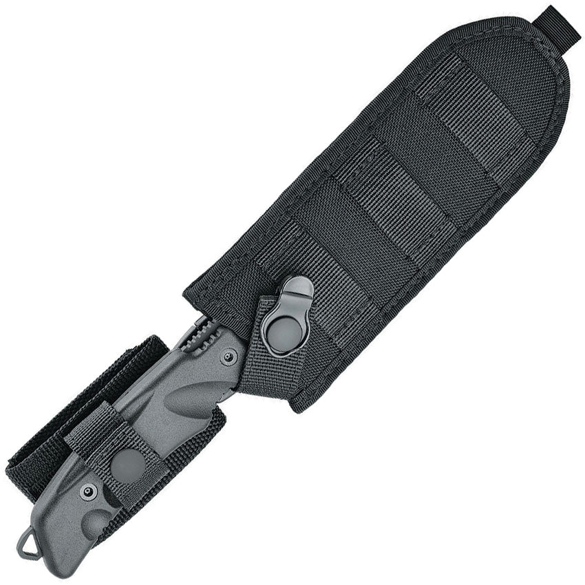 11.88" overall. 7" black finish Bohler N690 stainless blade. Black Forprene handle. Full tang. Lanyard hole. Comprehensive survival kit in aluminum box and nylon storage pouch. Black nylon MOLLE compatible belt sheath. Boxed.