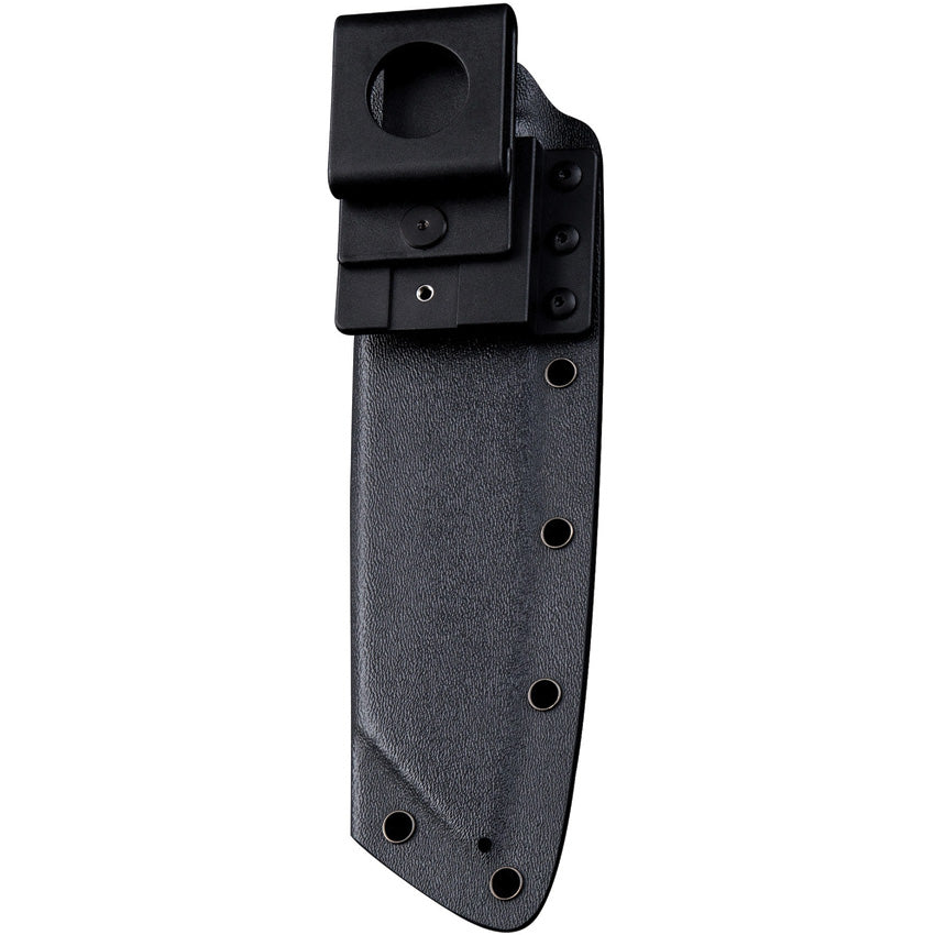 11.75" overall. 6.25" black finish D2 tool steel blade. Black G10 handle. Full tang. Lanyard hole. Orange liners. Black Kydex belt sheath. Boxed.
