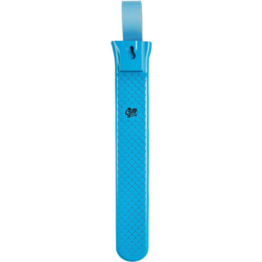 Overall: 12.88"; Blade: 7" l German 4116 Stainless l Standard Edge; Handle: Blue l Synthetic; Other Info: Full Tang l Lanyard Hole. Titanium bonded blade. Non-slip Cuda scale pattern grip. Ultra-light belt sheath with reversible loop and water drain system. Hang Packaged.