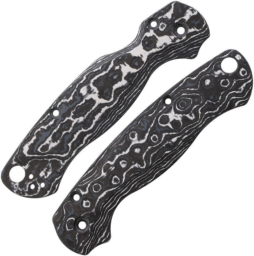 For Spyderco Para Military 2. Uses hardware from stock knife. White Storm carbon fiber construction. This product is not produced by nor endorsed by Spyderco and may void the manufacturer's warranty. Bulk packed.