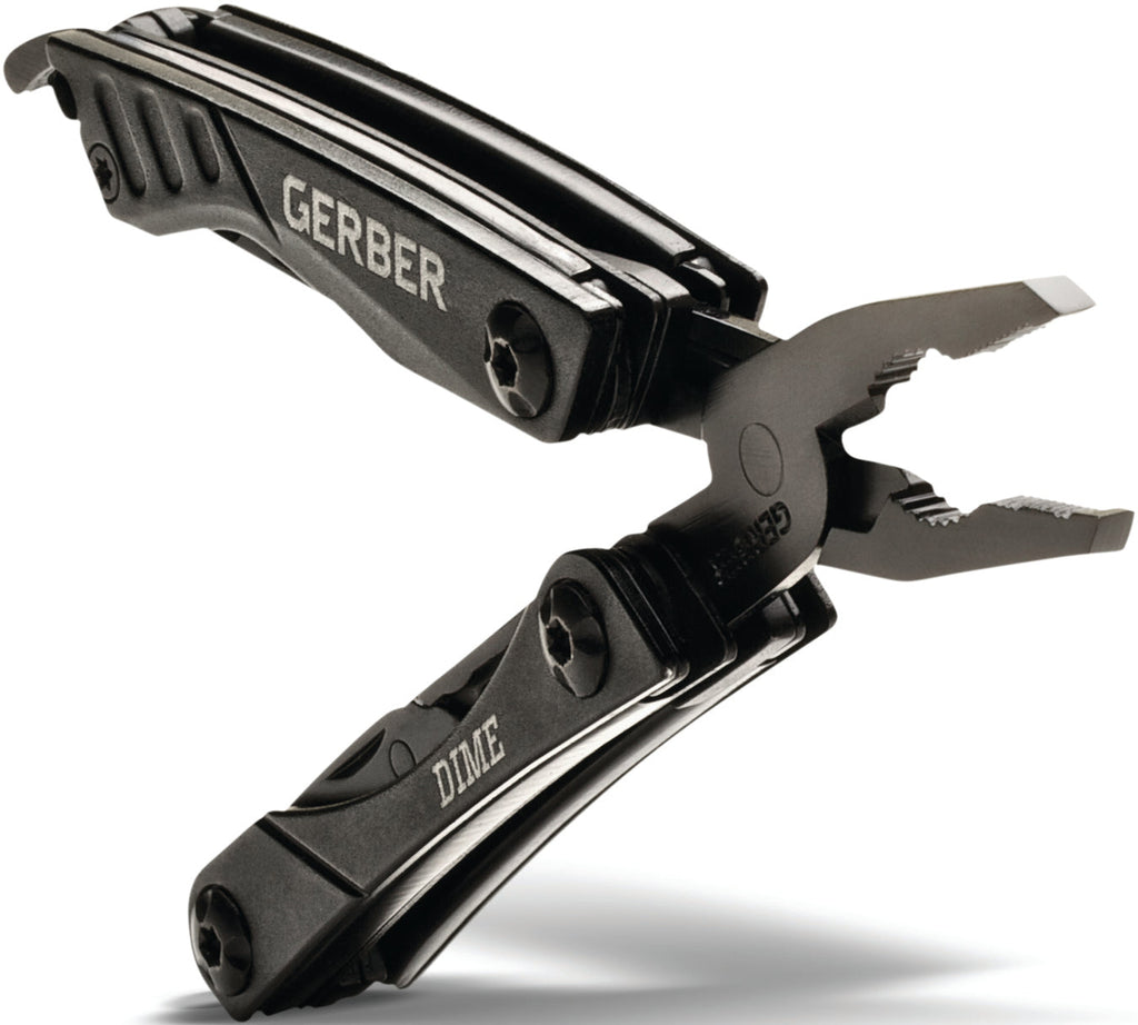 2 3/4" geschlossen. Zehn 3Cr13-Edelstahlkomponenten: Zange, Drahtschneider, Klinge, Paketöffner, Schere, mittlerer Flachkopf-Schraubendreher, Kreuzschlitz-Schraubendreher, Flaschenöffner, Pinzette und Feile. Schlüsselring. Griffe aus schwarzem Aluminium. Kompakt und leicht Wiegt 2,2 oz.