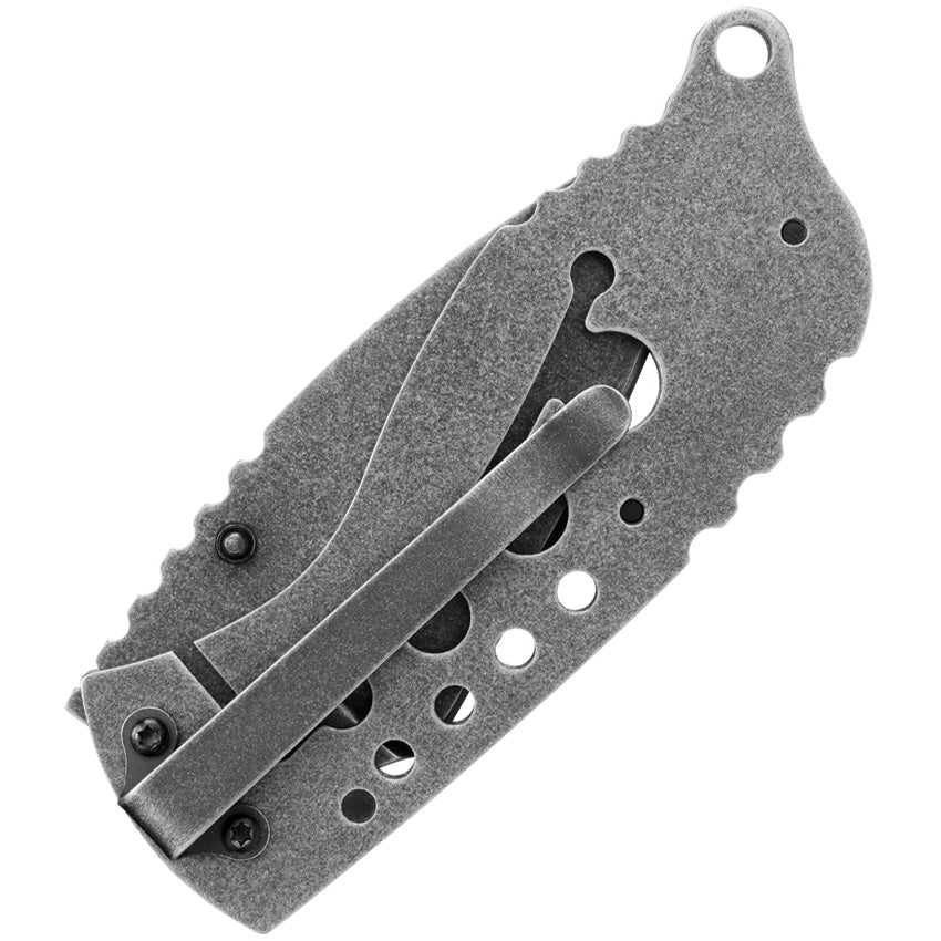 3,63" (9,22 cm) geschlossen. 2,5" (6,35 cm) Edelstahlklinge mit schwarzem Stonewash-Finish. Edelstahlgriff mit schwarzem Stonewash-Finish. Daumenbolzen. Lanyard-Loch. Taschenclip. Muschelverpackt.