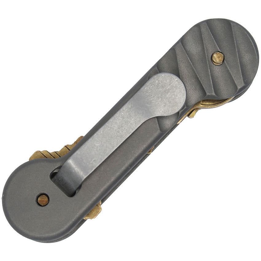 KeyBar. 3.5" overall. Carved handle. Screws included (to hold 4, 8, or 12 keys). Load keys in preferred order. O-rings keep keys snug and allow for adjustment of tension. Washers between keys for easy deployment. Includes link for key fob. Holds up to 12 keys. Keys and accessories not included. Clam packed.