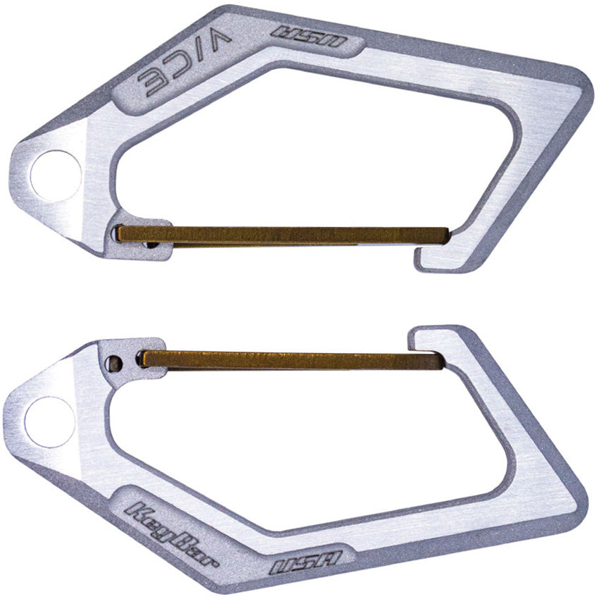 2.75" overall. Sandblast finish titanium construction with bronze gate. Large enough to fit key fobs and any accessories you need to keep together. Lanyard hole. Not for climbing. Vice Hardware collaboration. Gift tin.