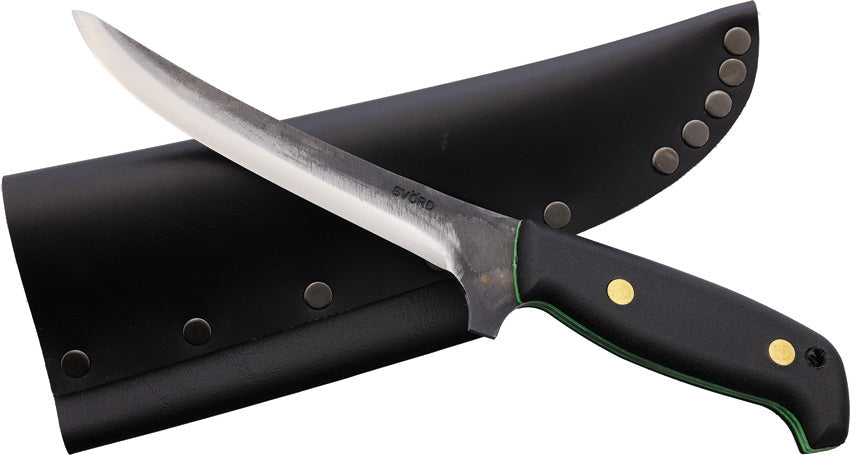 10.5" (26.67cm) overall. 6" (15.24cm) 15N20 steel blade. Black synthetic handle. Full tang. Green liners. Lanyard hole. Black PVC belt sheath. Boxed.