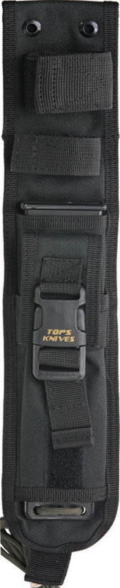 (Direct Action Rescue Team). 12 7/8" insgesamt. 7 1/2" schwarze, zugbeschichtete Klinge aus 5160 Kohlenstoffstahl. Voller Tang. Griffe aus schwarzem Leinenmicarta. Lanyard-Schlaufe. Schwarz gefütterte schwere Cordura-Gürtelscheide mit Beinschnürung. Entworfen von Trace Rinaldi.