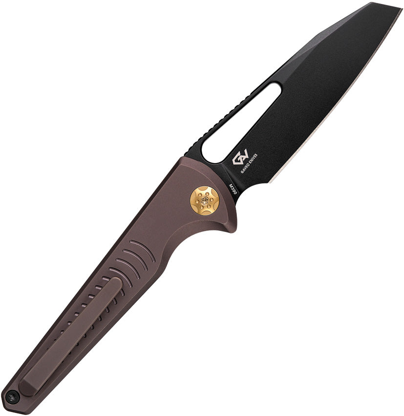 4.38" (11.13cm) closed. 3.38" (8.59cm) black stonewash finish Bohler M390 stainless sheepsfoot blade. Purple stonewash finish titanium handle. Thumb pull. Pocket clip. Black nylon zippered storage case. Boxed.