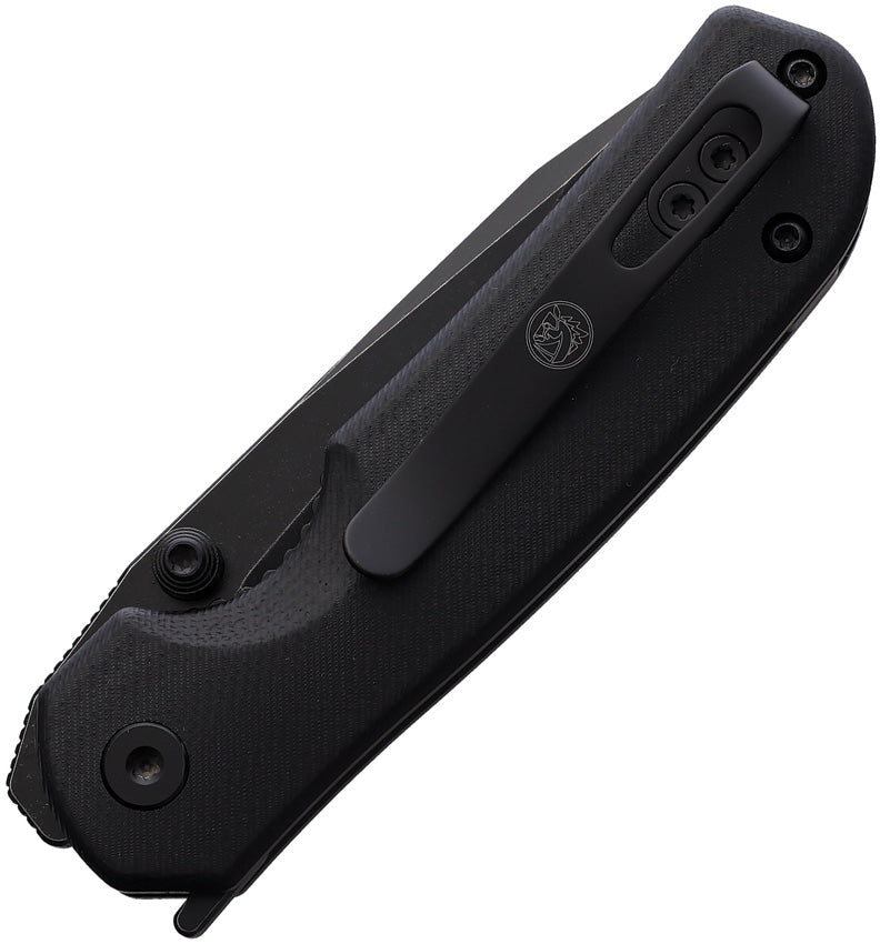 3.5" (8.89cm) closed. 2.63" (6.68cm) black stonewash finish 14C28N Sandvik stainless blade. Black G10 handle. Thumb stud. Pocket clip. Extended tang. Black nylon zippered storage case. Boxed.