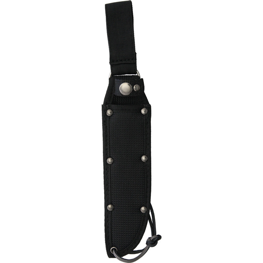 11" overall. 6.5" satin finish stainless clip point blade. Imitation stag handle. Full tang. Lanyard hole. Black nylon belt sheath.