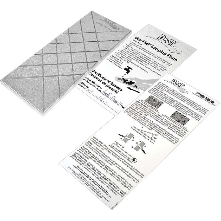 Dimensions: 10" x 4". 120 micron. Diamond Hardcoat Technology. Aggressive surface to facilitate quick and easy flattening of conventional and Arkansas stones and water stones. Boxed with hanging tab.