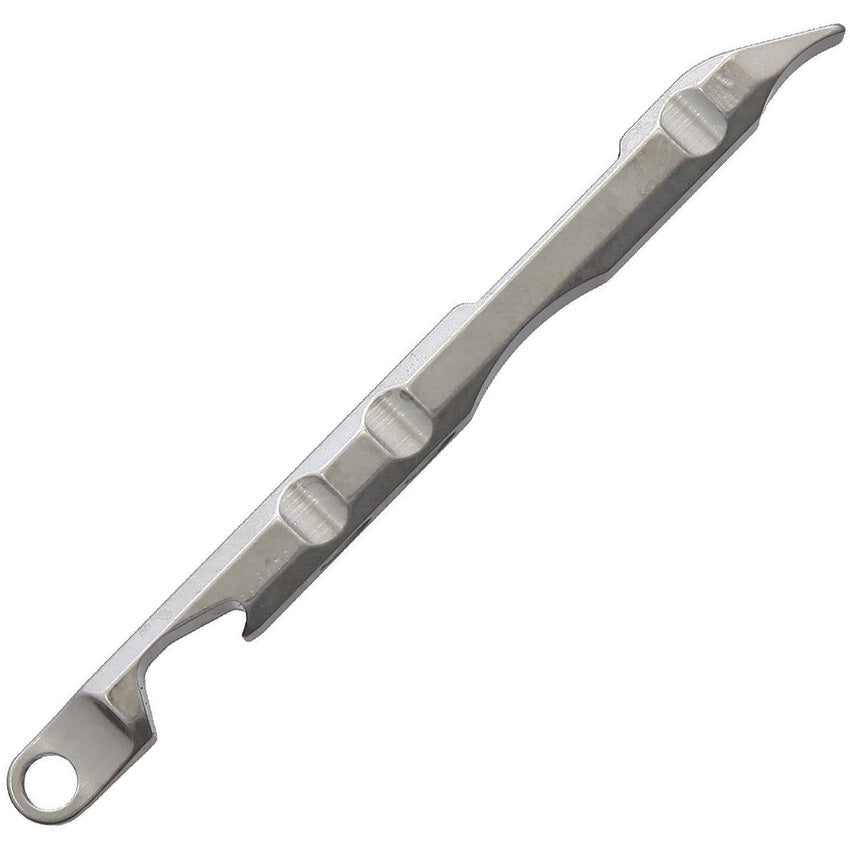 Dimensions: 3.15" x .47" x .24". Tools include: Pry bar l Keyring. Tumbled to a uniform semi-stonewash finish. High strength to weight ratio. Boxed.