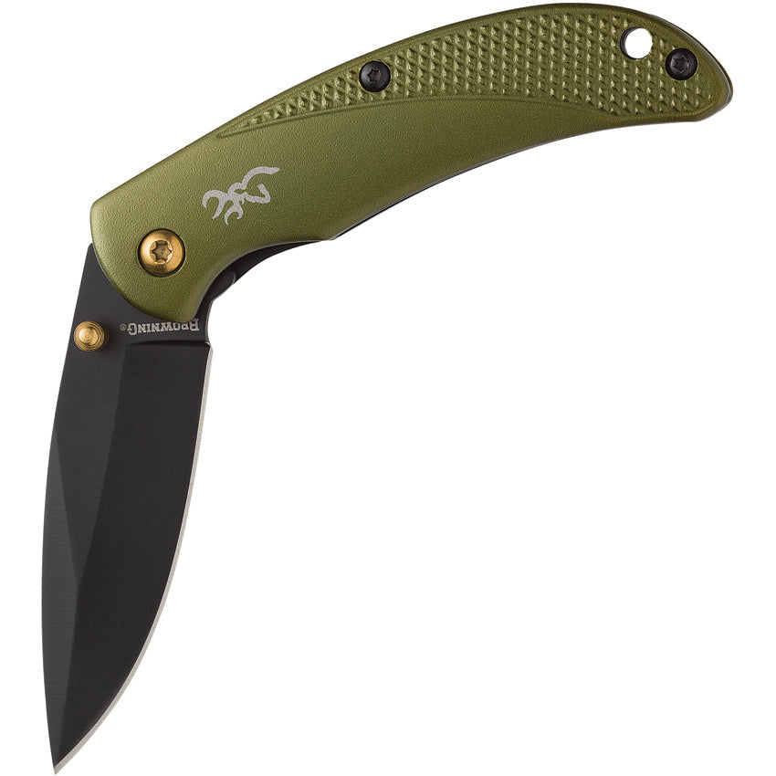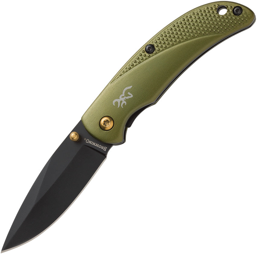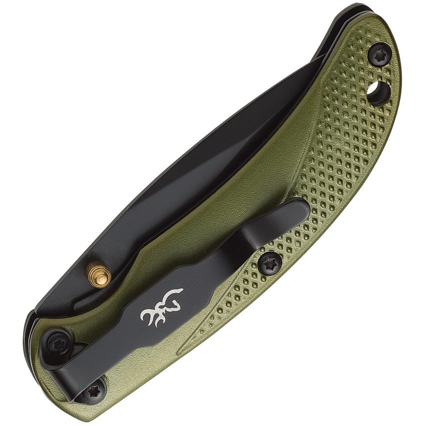 3.38" (8.59cm) closed. 2.38" (6.05cm) black finish 7Cr17MoV stainless blade. Green anodized aluminum handle. Thumb stud. Lanyard hole. Pocket clip. Clam packed.