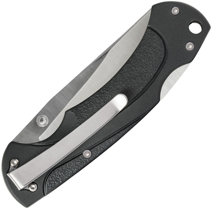 4.5" (11.43cm) closed. 3.5" (8.89cm) satin finish partially serrated stainless blade. Black nylon handle. Thumb stud. Lanyard hole. Pocket clip. Boxed.