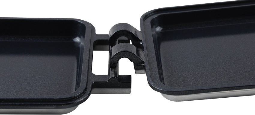 27" overall. Lightweight and easy to hold while cooking. Ceramic non-stick coating. Reinforced hinge for added durability. Break-apart hinge makes cleaning easy. Wood handle. Aluminum construction. Bulk packed.