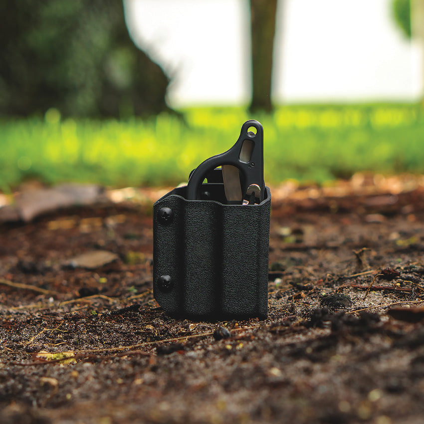 Compatible with Leatherman Raptor Response. Pocket clip fits belts up to 1.75". Adjustable retention. Black Kydex construction. Tool pictured not included. Hang packaged.