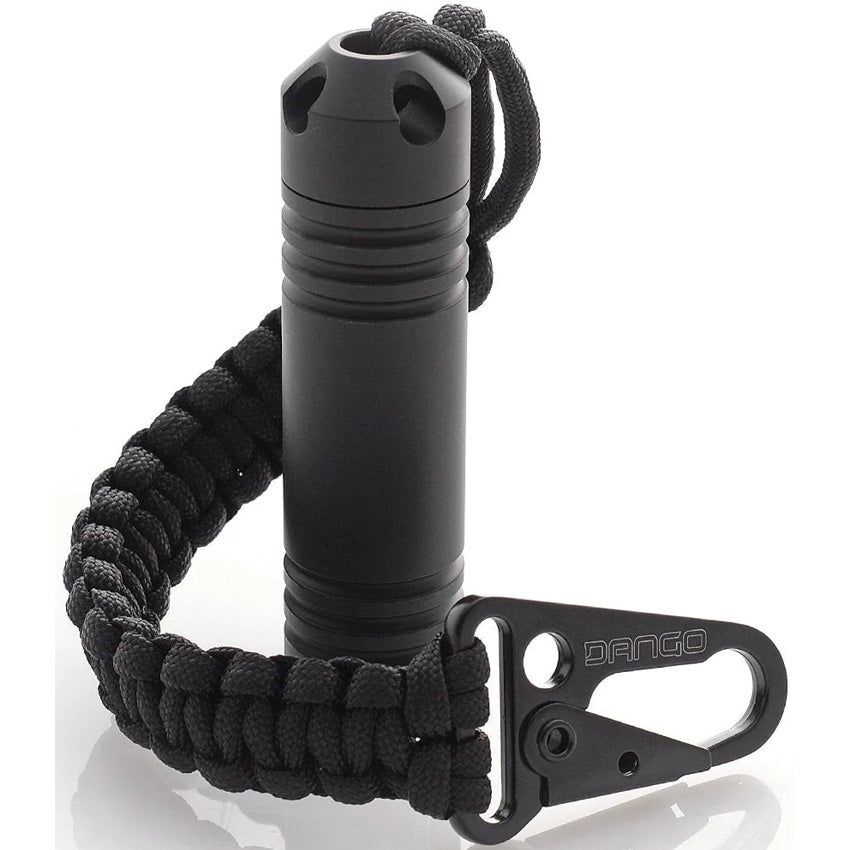 Waterproof to 1000 feet. Food safe. Quad Loop secure cap for tethering options. Internal dimensions: 0.75" x 2.95". Aluminum construction. Color: Jet black. Hang packaged.