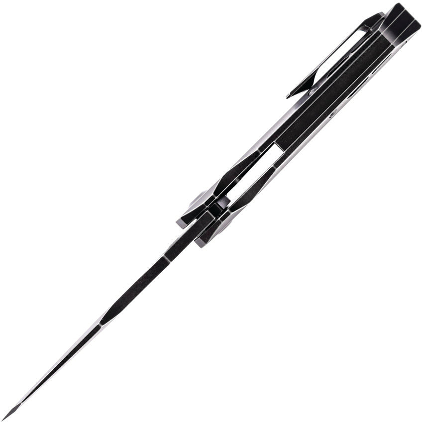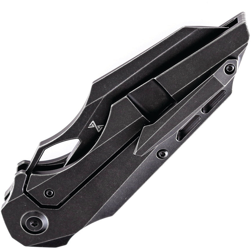 4.75" (12.07cm) closed. 3.5" (8.89cm) black stonewash finish CPM S35VN stainless blade. Black stonewash finish titanium handle. Thumb pull. Lanyard hole. Pocket clip. Black nylon pouch. Boxed.