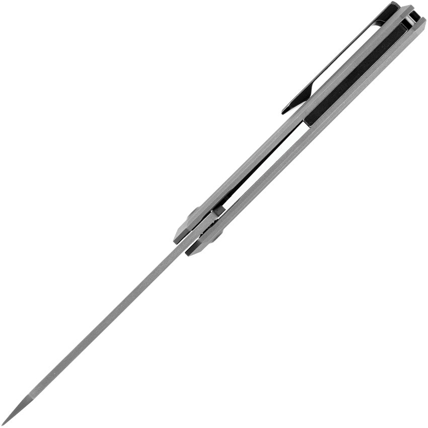 4.88" (12.4cm) closed. 3.75" (9.53cm) Damascus steel blade. Silicone carbide titanium handle. Extended tang. Pocket clip. Black nylon pouch. Boxed.