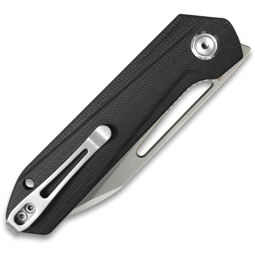 4.25" (10.8cm) closed. 3" (7.62cm) satin finish D2 tool steel blade. Black G10 handle. Extended tang. Thumb pull. Lanyard hole. Pocket clip. Boxed.