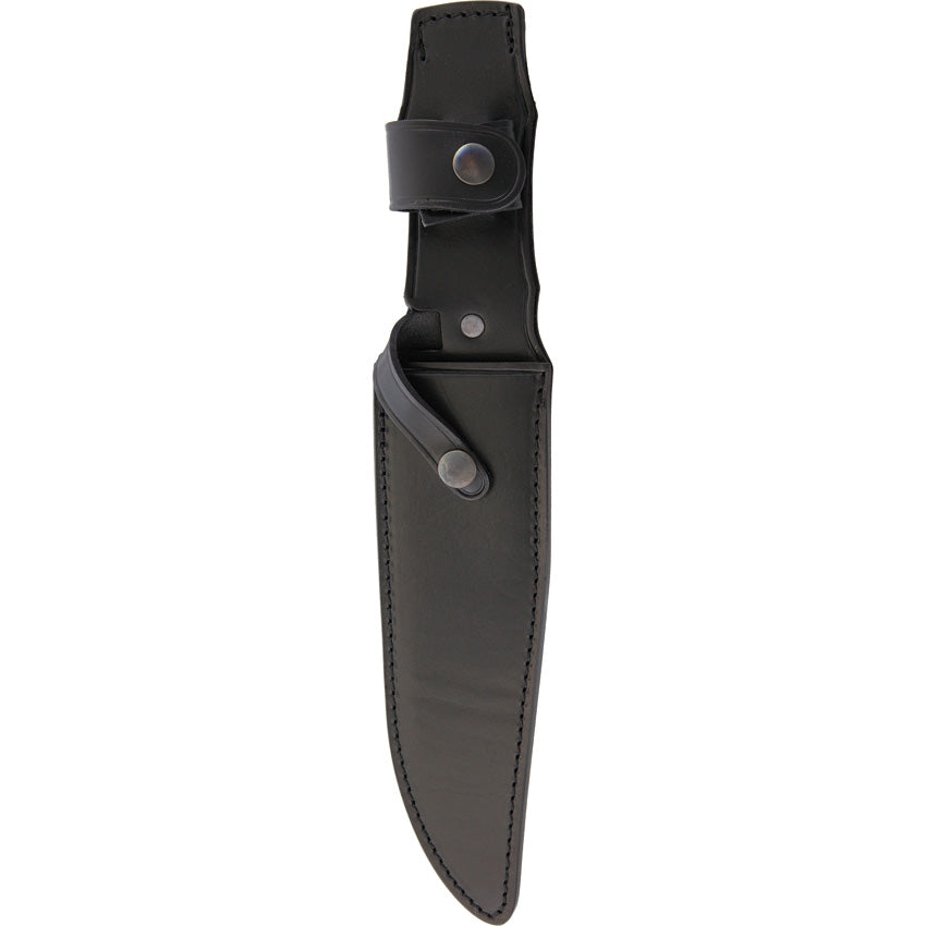 13.5" overall. 8.5" satin finish 440C stainless clip point blade. Green micarta handle. Stainless guard and pommel. Glass breaker. Black leather belt sheath.