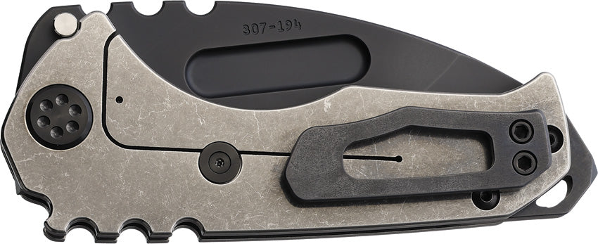 4.5" (11.43cm) closed. 3.25" (8.26cm) black DLC coated S45VN stainless tanto blade. Tumbled finish titanium handle. Thumb stud. Glass breaker. Lanyard hole. Pocket clip. Water tight case. Boxed.
