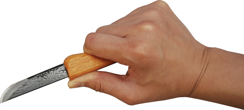6.00" (15.24cm) overall. 2.25" (5.72cm) stainless blade. Wood handle. Maru single edge blade. Black leather sheath. Hang packaged.