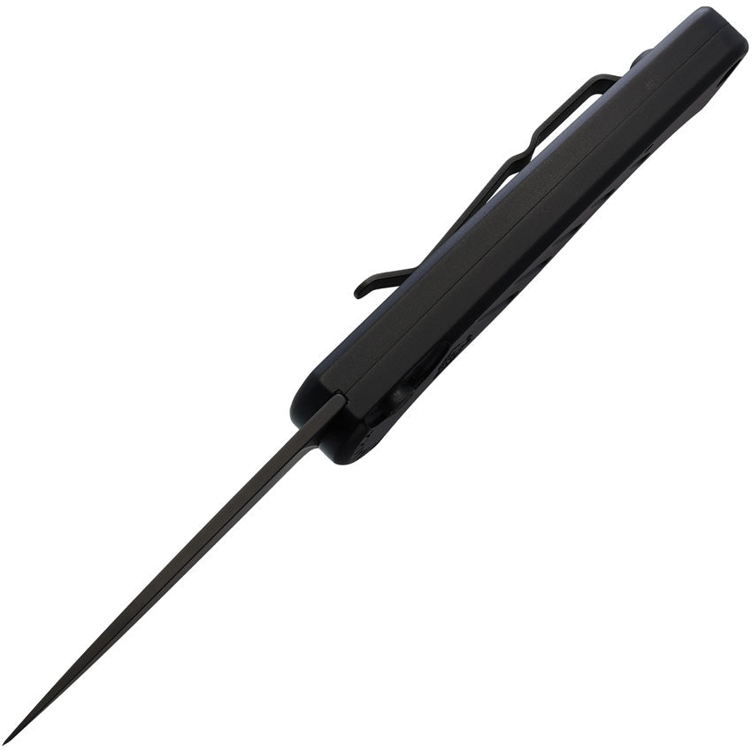 Automatic opening. 3.38" (8.59cm) closed. 2.5" (6.35cm) black oxide coated 154CM stainless blade. Black anodized aluminum handle. Lanyard hole. Pocket clip. Boxed.