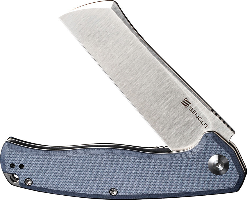 4.63" (11.76cm) closed. 3.5" (8.89cm) satin finish 9Cr18MoV stainless sheepsfoot blade. Blue G10 handle. Extended tang. Lanyard hole. Pocket clip. Black nylon zippered storage case. Boxed.