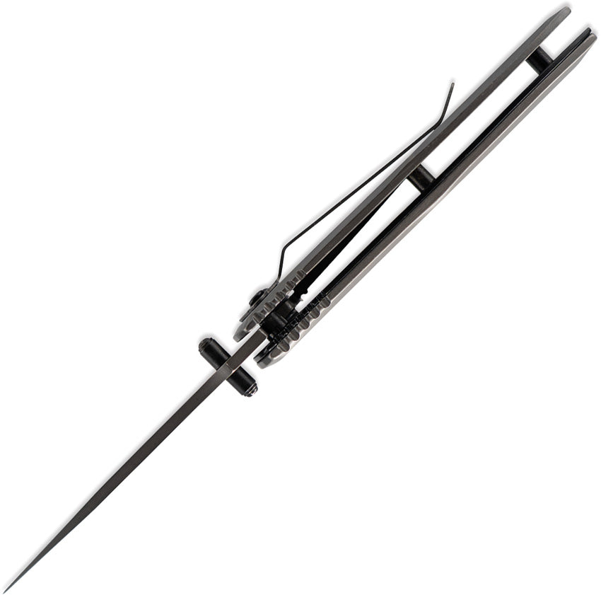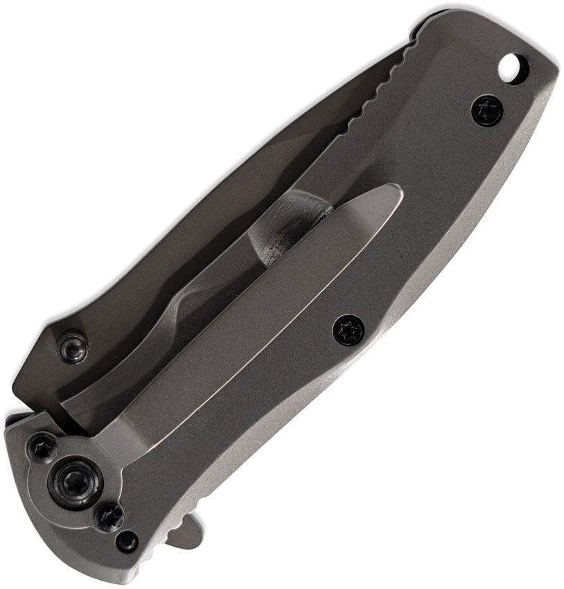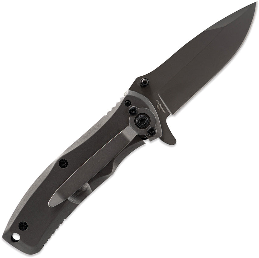3.5" (8.89cm) closed. 2.75" (6.99cm) black finish 420 stainless blade. Gray stainless handle. Extended tang. Thumb stud. Lanyard hole. Pocket clip. Boxed.