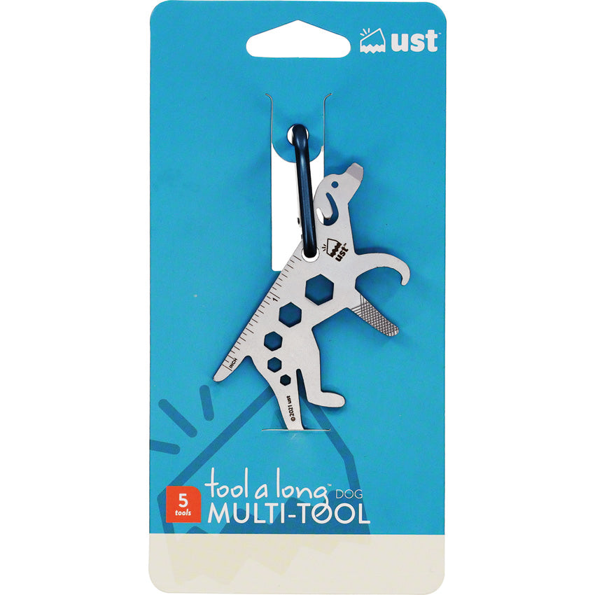 3" en total. Las herramientas incluyen: Mosquetón l Regla l Lima l Destornillador hexagonal/para puntas l Abrebotellas l Punta de destornillador. En forma de perro. Construcción de acero inoxidable.