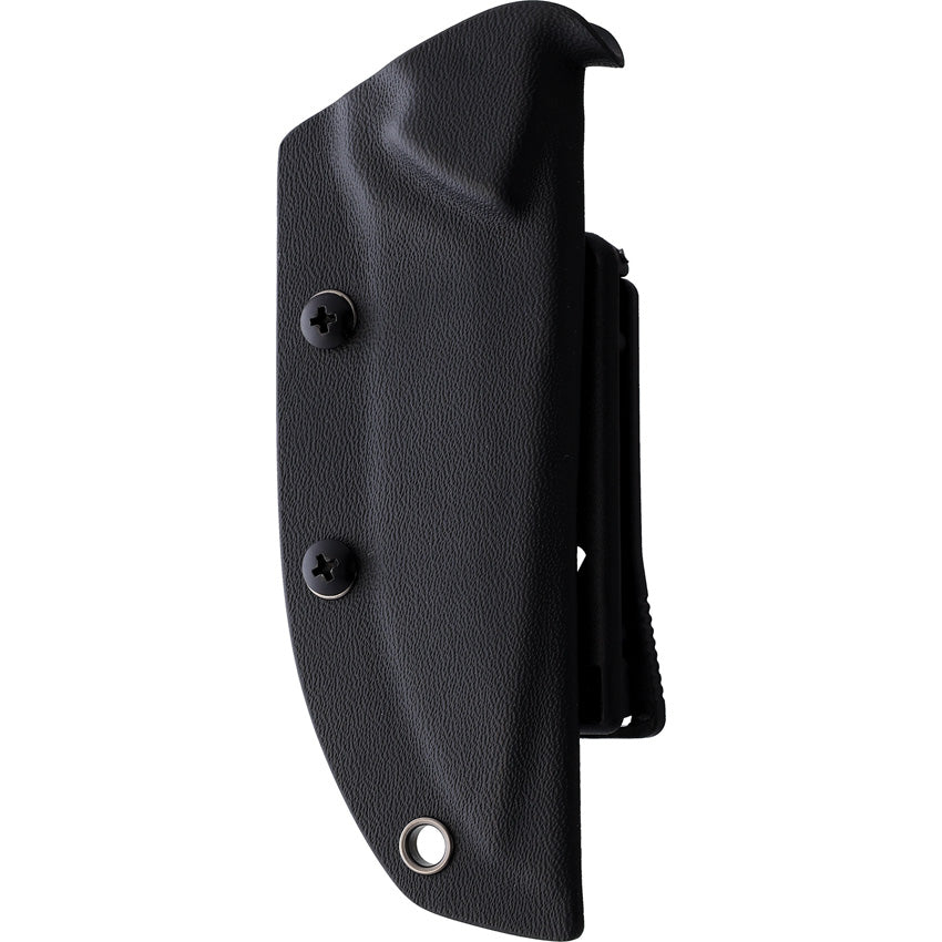 8.5" (21.59cm) overall. 4" (10.16cm) satin finish 154CM stainless blade. Black canvas micarta handle. Full, extended tang. Lanyard hole. Black Kydex belt sheath. Boxed.