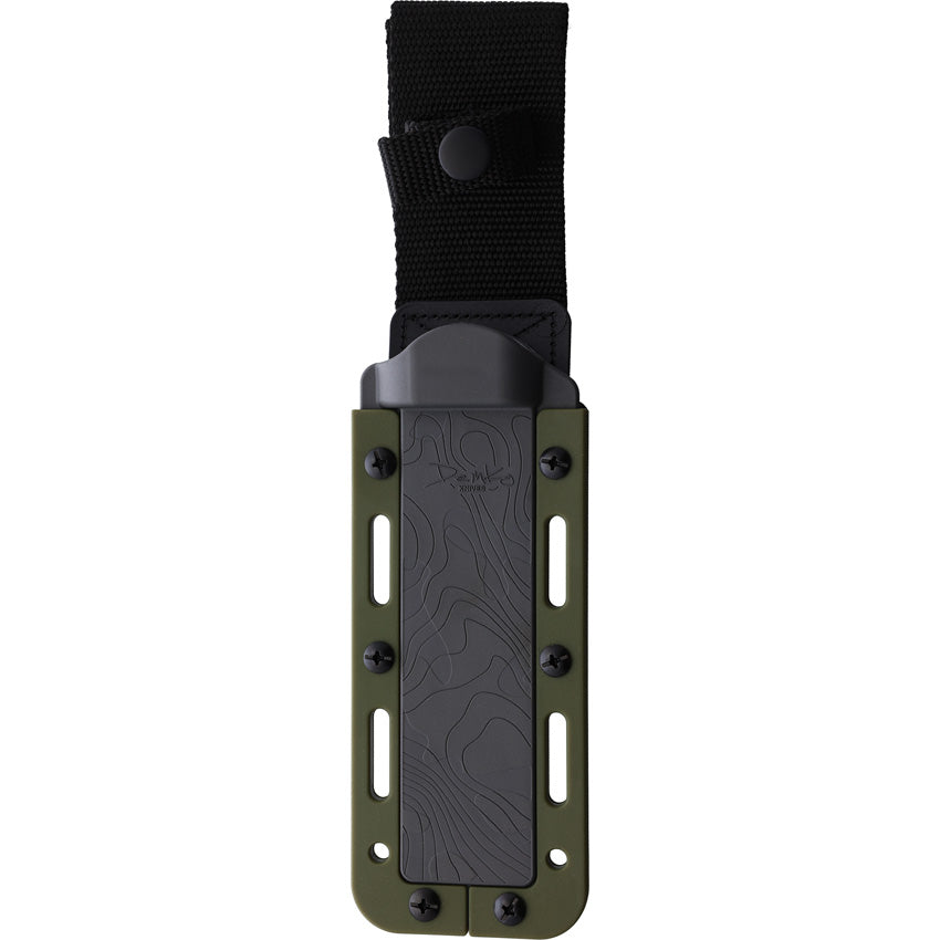 9.75" (24.77cm) overall. 5" (12.7cm) satin finish AUS-10A stainless tanto blade. Green checkered rubber handle. Full tang. Lanyard hole. OD green and gray sheath. Kydex MOLLE compatible belt sheath.