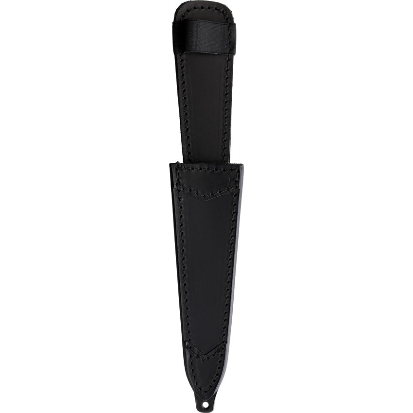 11.88" (30.18cm) overall. 6.63" (16.84cm) black PVD coated Bohler N690 stainless blade. Sculpted Walnut handle. Steel guard and pommel. Black leather belt sheath. Boxed.