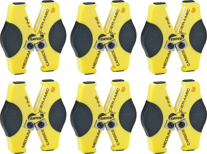 Lanyard hole. Non-slip base. Keyring. Pack of six comes individually clam packed. Ceramic sharpening rod and carbide bit. Preset sharpening angle. Boxed.