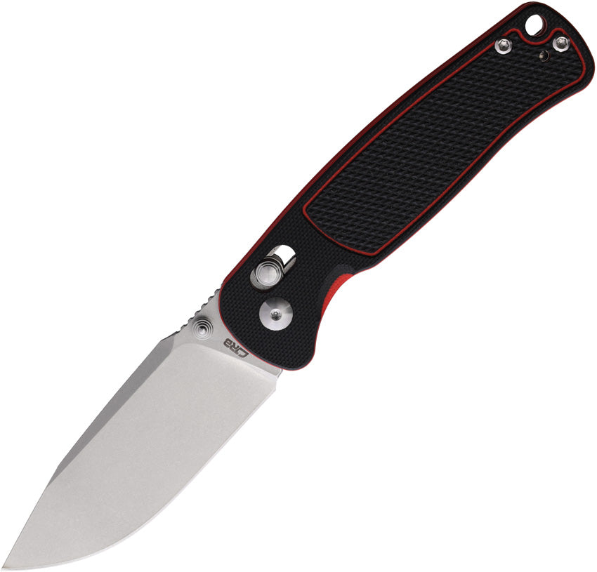 4.13" (10.49cm) closed. 3.13" (7.95cm) stonewash finish AR-RPM9 stainless drop point blade. Black and red G10 handle. Lanyard hole. Pocket clip. Thumb stud. Black nylon zippered storage case. Boxed.