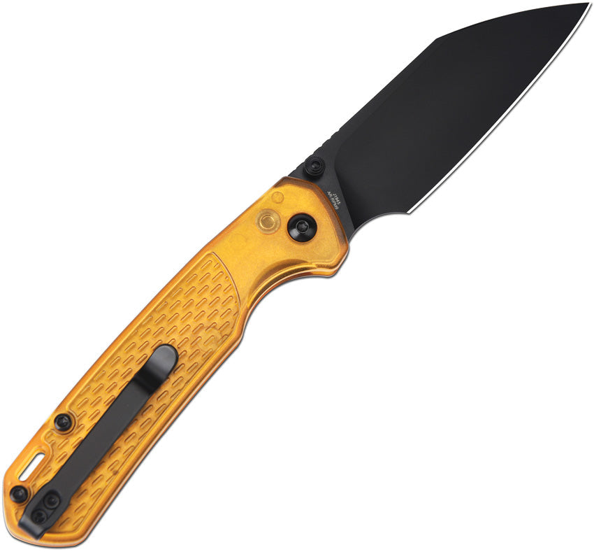 4.25" (10.8cm) closed. 3.25" (8.26cm) black PVD coated AR-RPM9 stainless blade. Amber FRN handle. Thumb stud. Lanyard hole. Pocket clip. Boxed.