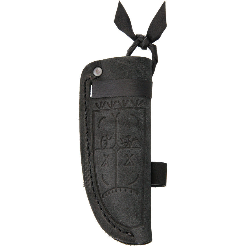 Overall: 7"; Blade: 3" l Damascus Steel l Standard Edge; Handle: Brown l Wood; Other Info: Martensitic Damask blade. Oiled curly birch handles with brass guard. Black leather belt sheath. Boxed.